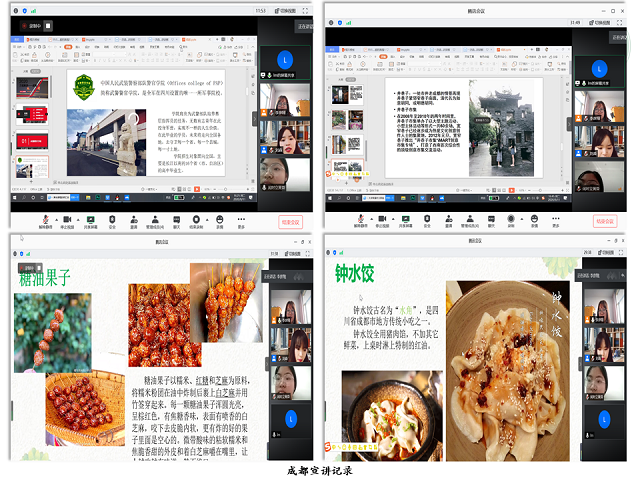 云端环游第二期第一站,队员们带领一位七年级的留守儿童来到了成都。团队成员刘淼、李彦翔为学生展示了成都的警官学院文化及成都著名的美景和美食。宣讲过程中学生积极参与,师生互动不断学生兴趣高涨