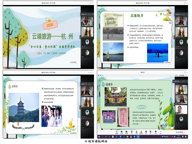 东南形胜,三吴都会,钱塘自古繁华。云端环游第二期第二站,一位八年级的留守儿童跟随团队中的丁宁、宋琪两位老师来到了素有“人间天堂”美誉的杭州,一起感受了西湖灵隐寺、南宋御街等著名景观的文化底蕴,领略了西湖醋鱼、杭三鲜、龙井虾仁等著名美食的精妙魅力。通过宣讲,同学对杭州的美景、美食、故事有了更多的了解,加深杭州的美好印象,也更加向往杭州这座城市。