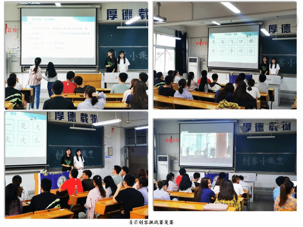 第一轮比赛,“晕头转向”,选手在完成“原地转三圈”的干扰性任务后依次回答主持人在PPT上放映的问题。第二轮为“汉字组队”,选手通过抢答的方式,从PPT上呈现的八个字中选择至少两个字组成成语。第三轮“滚轮抽题”要求参赛选手通过抽签选择题目,并通过答题数对小组进行记分。在比赛的过程中,各小组团结协作、集思广益,不仅展现了丰富的知识储备和敏捷的思维能力,还体现了创客的朝气蓬勃。经过激烈的角逐,共有六组选手成功晋级决赛。