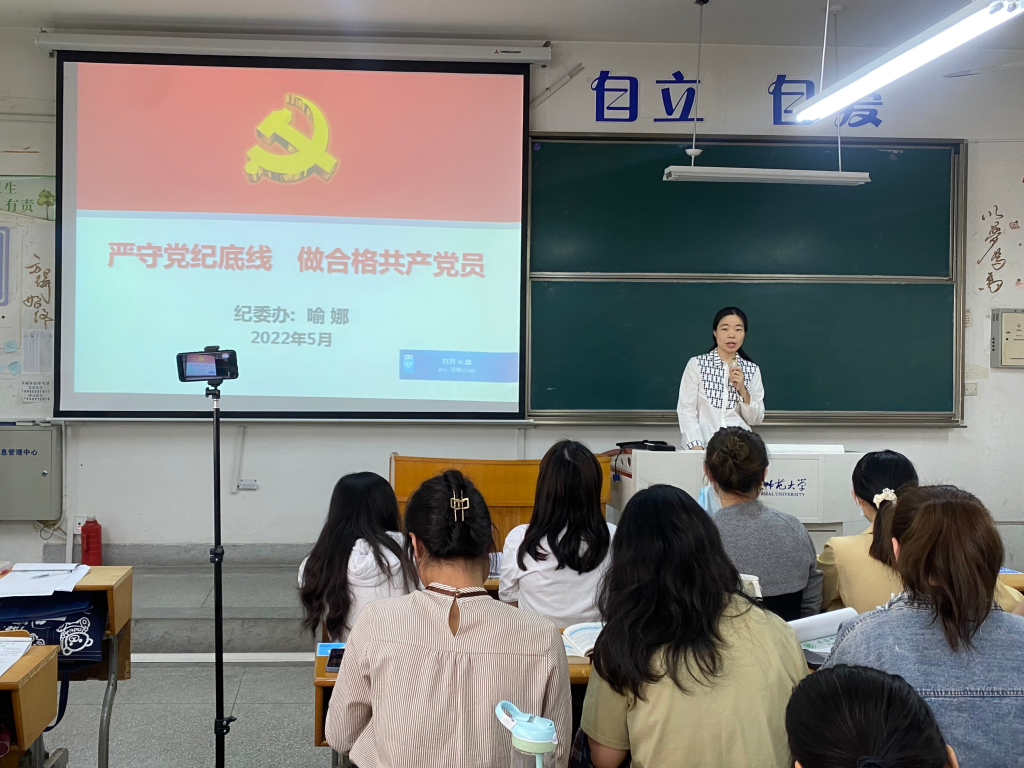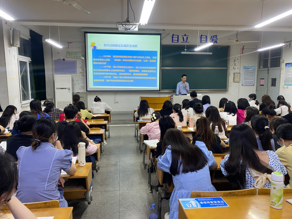 第9期党员培训班共开展4次理论授课,多位专家老师结合主题为学员们带来精彩丰富的课程。校纪委刘长生为学员们带来了一堂深刻严肃的党课——学习党内法规,严守党的纪律;马克思主义学院副院长李祥兴带领大家学习十九届六中全会精神;校纪委喻娜给大家进行了党风廉政教育;校团委书记汪凯从青年学子的担当这一主题为青年党员解惑。这些理论和交流课程不仅帮助学员们增强对党的理论知识的学习和理解,同时也增强同学党员意识、锤炼党性修养。
