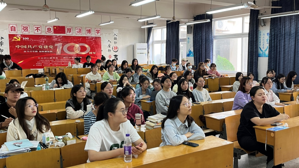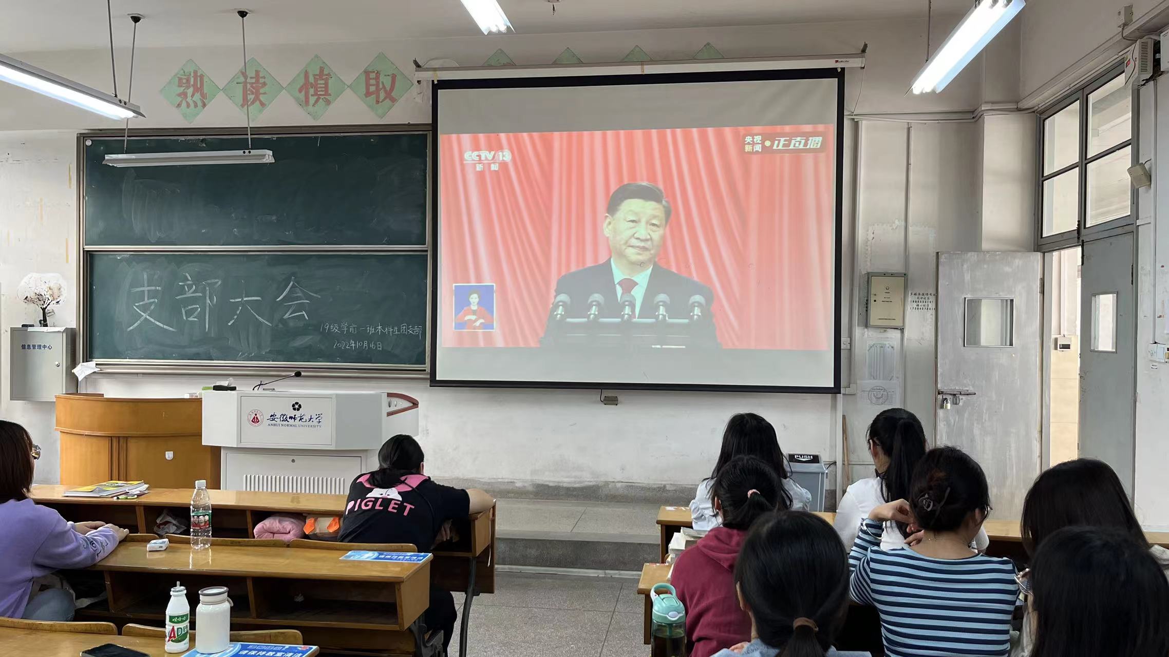开幕会前,团支部书记曾梦蝶介绍中国共产党历次代表大会和党的二十大召开的背景、重要性。上午十时开始,团支部成员共同聆听了习近平总书记代表党的第十九届中央委员会向大会作的工作报告。