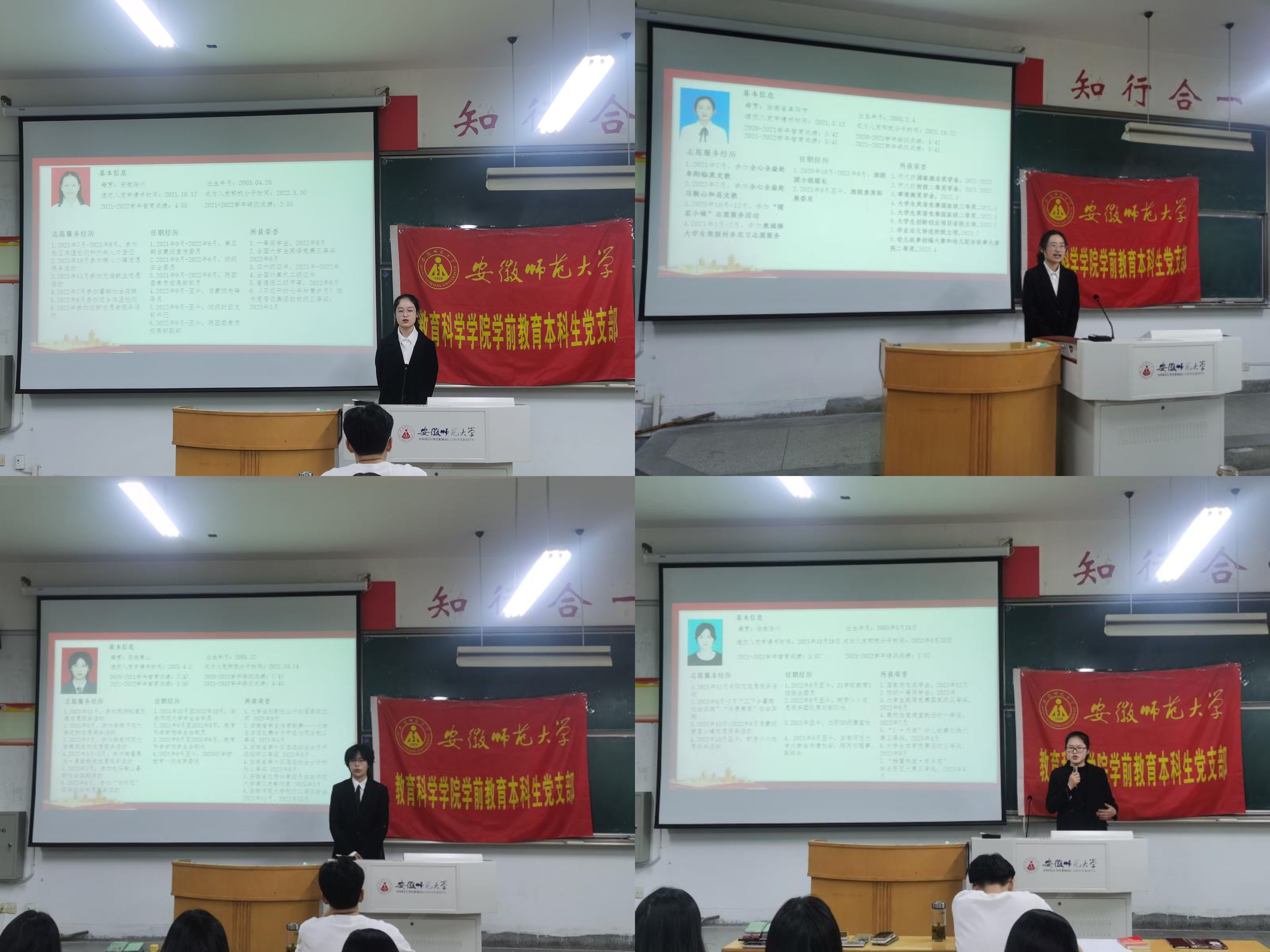 为确保党员发展质量,2023年5月3日晚,365英国上市官网学前教育本科生党支部在田楼8306教室举行学生党员发展答辩大会。学前教育本科生党支部副书记付银行主持会议,支部学生党员和入党积极分子代表参会。