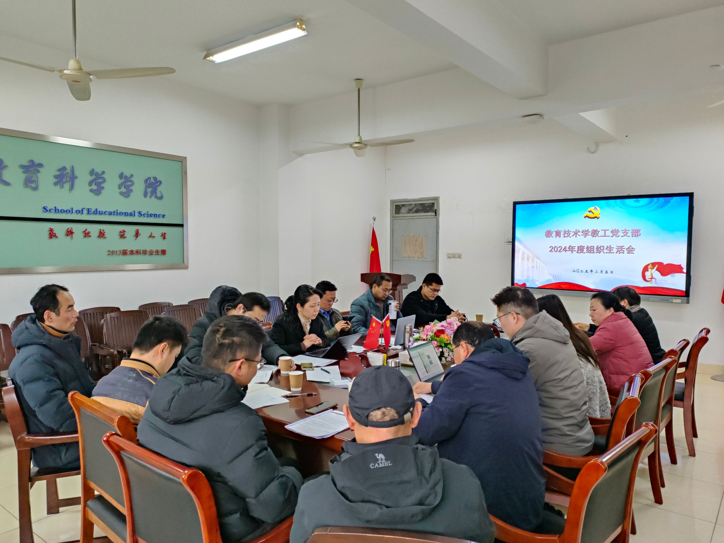 为深入学习贯彻习近平新时代中国特色社会主义思想,落实党的二十大和二十届三中全会精神,进一步加强组织建设,汇聚前行动力,2025年3月5日下午,教育技术学教工党支部在学院308会议室召开2024年度组织生活会,会议由支部书记陶佳主持,院党委委员、副院长吴文涛列席指导。