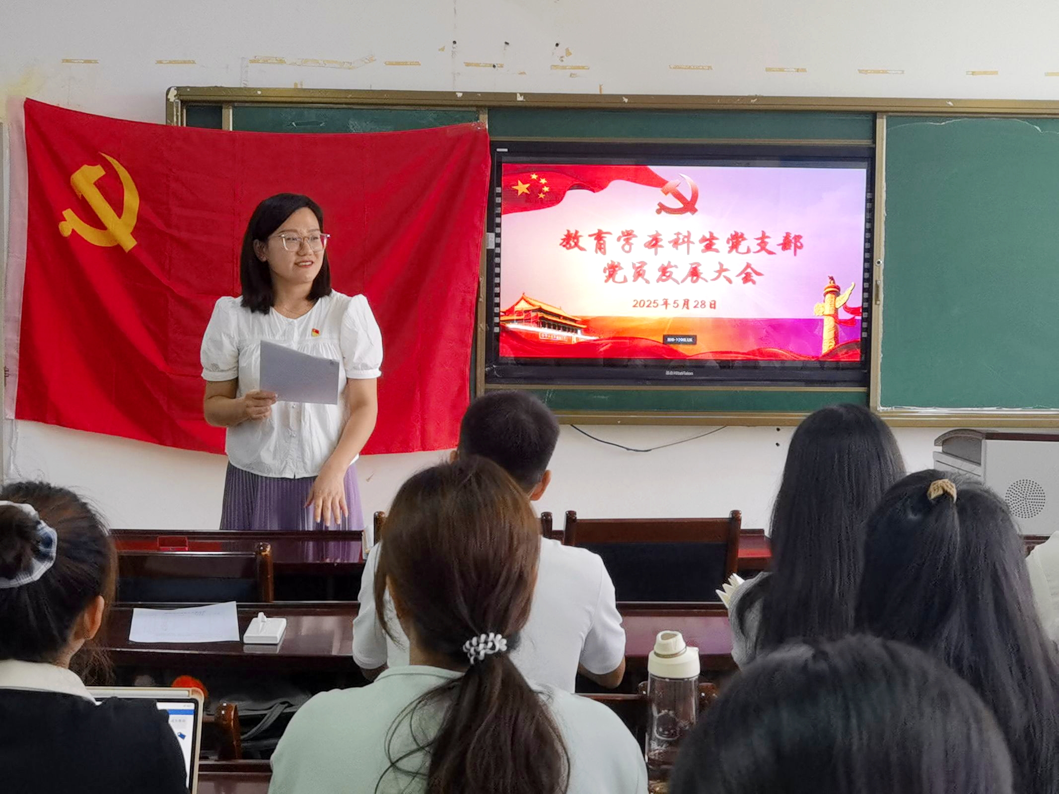 为进一步提升党员队伍的整体素质,严格把控党员发展质量,5月28日下午,365英国上市官网教育学本科生党支部于田楼B座412教室举行2025年上半年党员发展大会暨主题党课活动,院党委副书记杜凤、支部全体党员及八位发展对象参加会议,会议由支部书记赵茜主持。