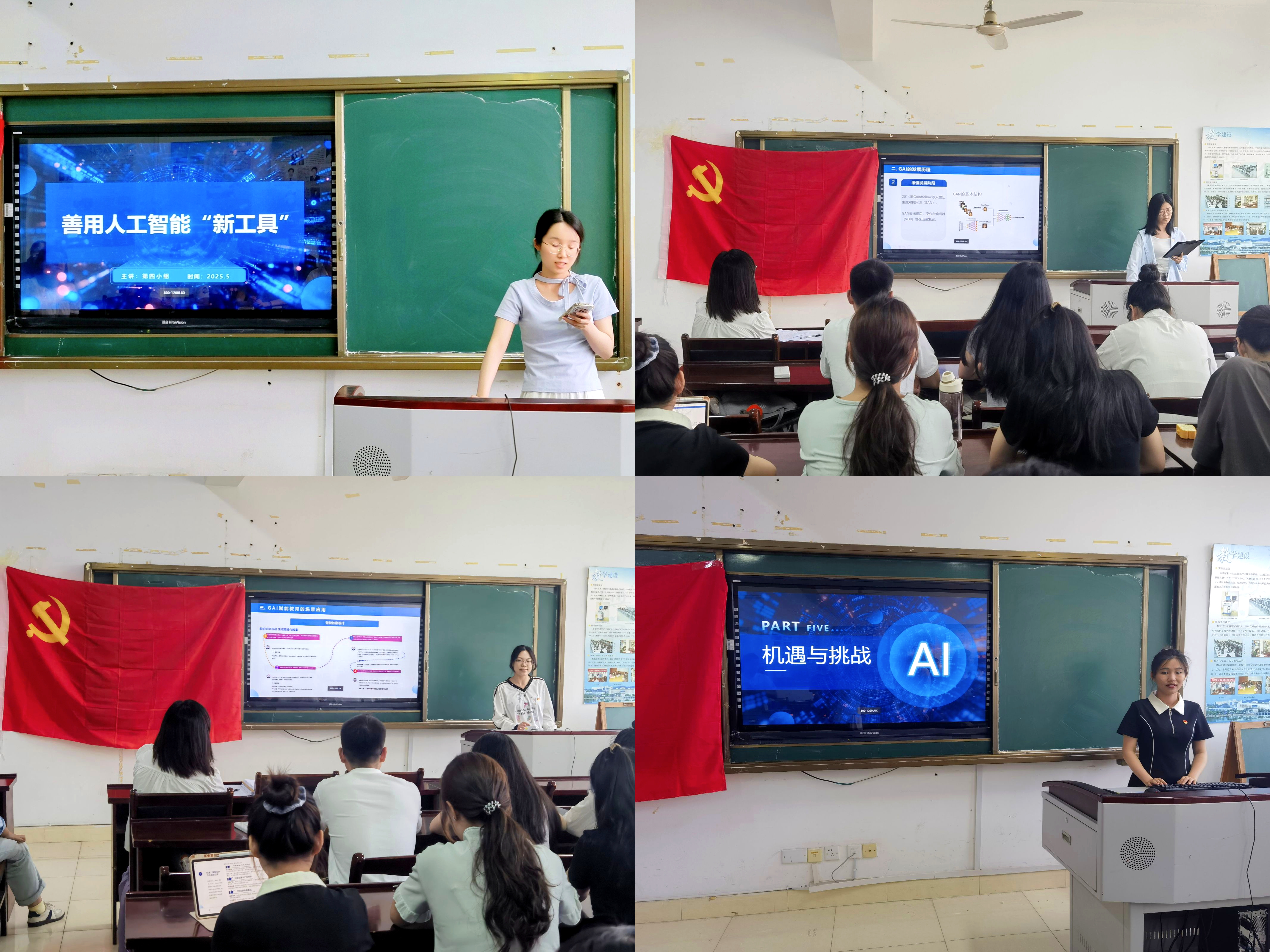 在主题党日活动环节,第四小组以“善用人工智能新工具”为主题,围绕生成式人工智能(GAI)展开深入学习,系统介绍了GAI的定义、特征及发展历程,重点分享其在教育领域“教、学、研、评、训”五大场景的应用,如智能教案设计、学情分析等,展现了GAI对教育教学效率提升与模式创新的推动作用。小组同学最后还和大家探讨了GAI所带来的机遇与挑战,倡议党员同学主动学习先进技术、积极拥抱发展变化,善于将GAI作为辅助工具提升决策针对性与服务效能,同时也要严守数据安全底线,实现技术应用与责任担当的有机统一。