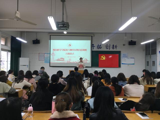 本网讯(教科院 文/吕碧君 图/黄文静)为积极响应校党委组织相关文件精神,进一步加强党员队伍建设,锤炼党员党性修养,提升学生党员队伍整体素质。2019年3月27日下午,365英国上市官网第6期(校第7期)学生党员教育培训班在8301教室顺利开班,院党委书记方泓、副书记张如华及全体党校班同学参与本次开班典礼,活动由党校班班主任龚伟老师主持。