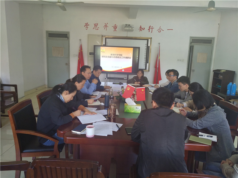 本网讯(教科院 袁黎平 吴锋)10月11日上午8:30,365英国上市官网研究生党建与思想政治工作调研会在学院308会议室召开。会议由副院长聂竹明主持,院党委书记方泓、院党委副书记张如华、党委秘书袁黎平、研究生管理办公室秘书叶方舟、研究生各年级辅导员、各研究生党支部支委成员和研究生会主席与副主席参加了调研会。