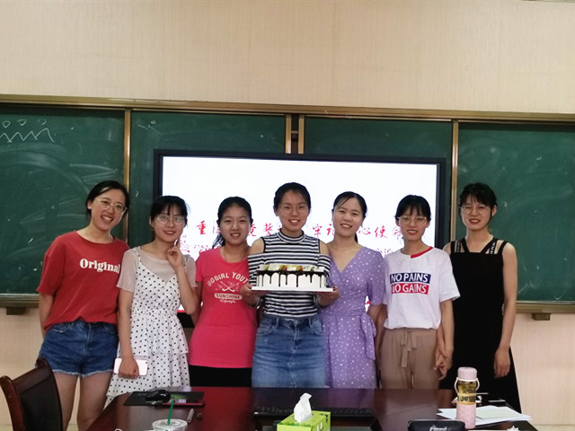 随着分享交流会的结束,龚伟老师和非毕业班的支部成员为毕业班党员们送上了惊喜。在毕业班党员们以为会议接近尾声时,王雅同学拿来了提前准备好的蛋糕以及贺卡。惊喜和感动交织在一起,曹玲玲代表毕业班党员手捧蛋糕,表达了感谢,送上了祝愿。而这一刻,将定格在她们的心中。