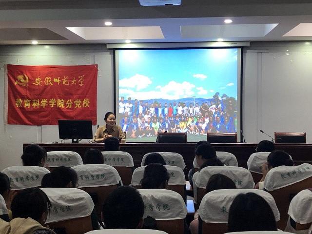 支教西南边陲,发挥榜样引领。10月19日晚,教科院于田楼B座学术交流中心举办座谈交流会,特邀安徽师范大学第20届研究生支教团成员宁嘉惠、苏镇东主讲,培训班副班主任谭茹轩以及我院第29期入党积极分子培训班全体学员参与。