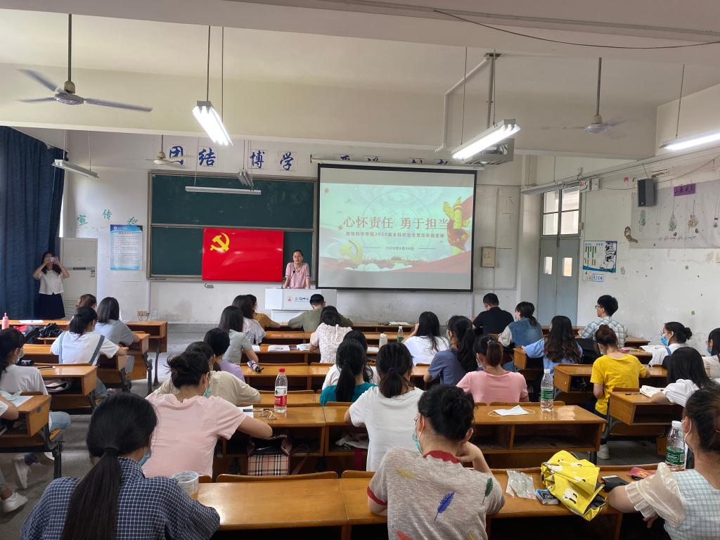 630日,学院组织开展了2020届本科毕业生党员专题学习会,支部毕业生党员全员参与。会上,院党委副书记张如华老师进行了“心怀责任,勇于担当”专题党课的讲解。她希望同学们能够牢记党员身份,尽好党员义务,做到在政治上讲忠诚、在组织上讲服从、在行动上讲纪律;立足本职岗位,加强业务学习,不断提高自身综合素质,做到勇于担当,在攻坚克难中锤炼作风、大胆作为。