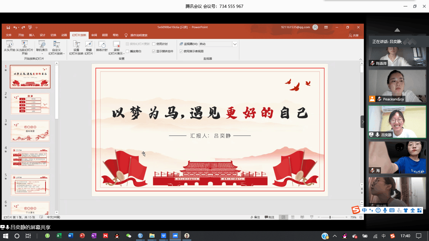 点点滴滴的回忆,见证了毕业班党员一路的成长,也是支部工作的宝贵财富。67日下午3点,8位毕业班党员依次在线进行了汇报总结,并向非毕业班学妹们分享了支部学习和工作经验。