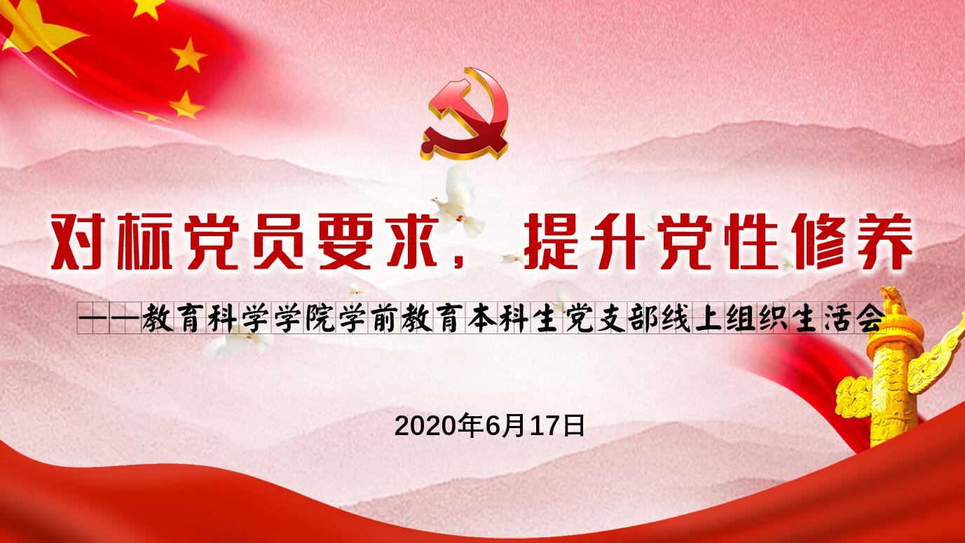 本网讯(教科院 李月 龚伟)为加强毕业生党员教育管理,切实做好毕业生党员文明离校和组织关系转移工作,202063日至73日期间, 学前教育本科生党支部根据学校春季学期学生返校和校园疫情防控要求,精心组织策划了“四个一”活动,旨在使广大毕业生党员进一步强化党员意识,增强组织观念和纪律观念,充分发挥其在学习、工作、就业和离校中的先锋表率作用。