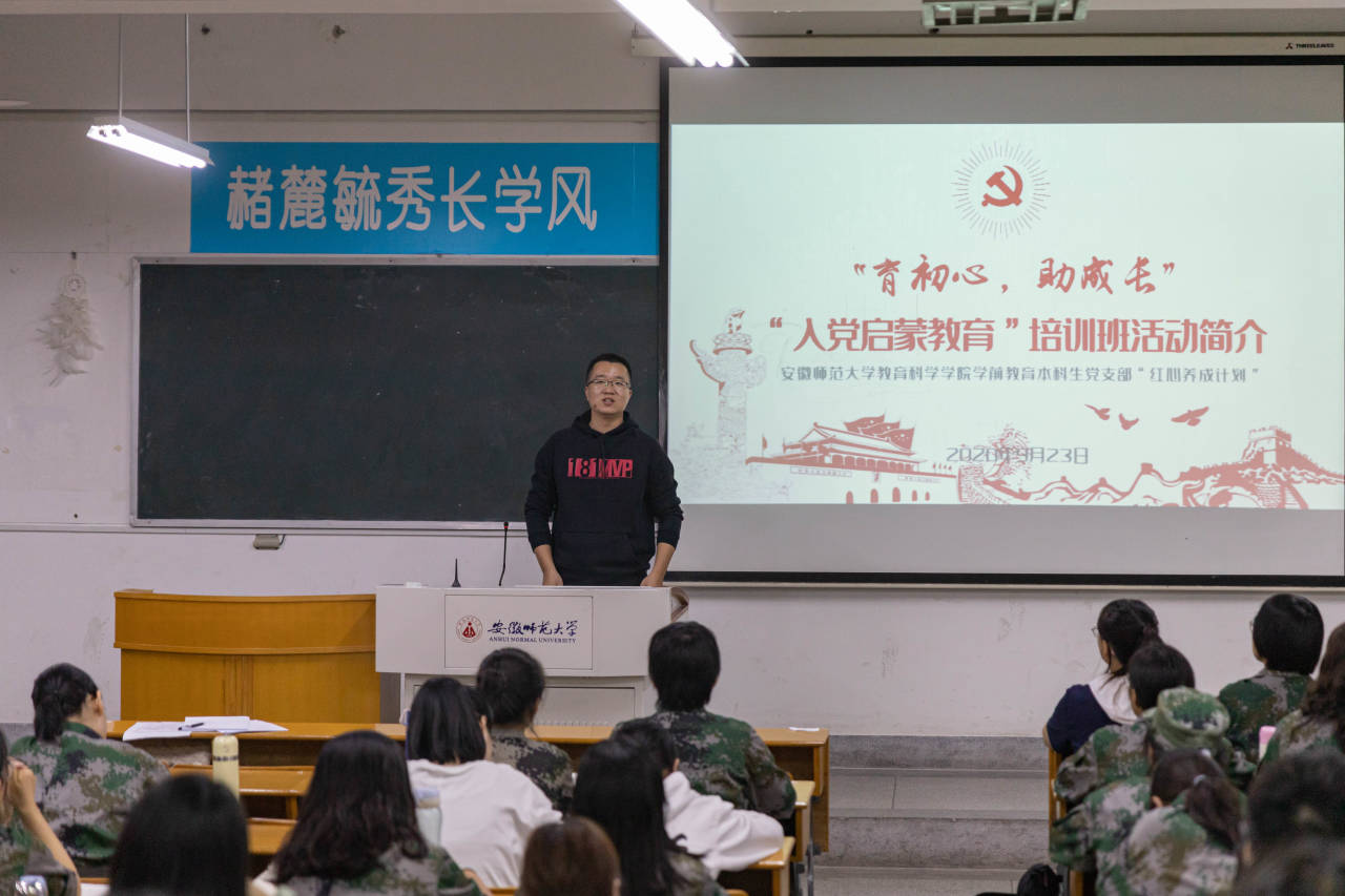 本网讯(教科院 彭少斌 龚伟)为帮助2020级学前教育专业新生更好了解“入党启蒙教育”,推动学院学生党建工作的顺利开展,923日晚,第四期“入党启蒙教育”培训班宣讲活动在田楼8402教室顺利举行。本次活动由2019级入党积极分子薛敏主持,学前教育专业本科生党支部书记龚伟老师、2020级学前教育专业辅导员蔡文老师、“驻班党员”“先锋导员”以及全体2020级学前教育专业学生参与了活动。