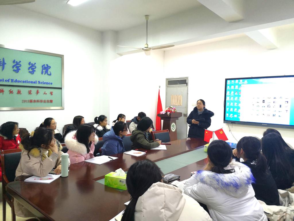 本网讯(教科院 秦灿)做“观天下事、说中国话、做匿名人”的青年大学生。12月18日19:00,教科院“入党启蒙教育”培训班于学院308会议室,特邀研支团成员梁冬、范晨晨为启蒙班学员开展支教经历交流分享会。龚伟老师、蔡文老师旁听分享会。