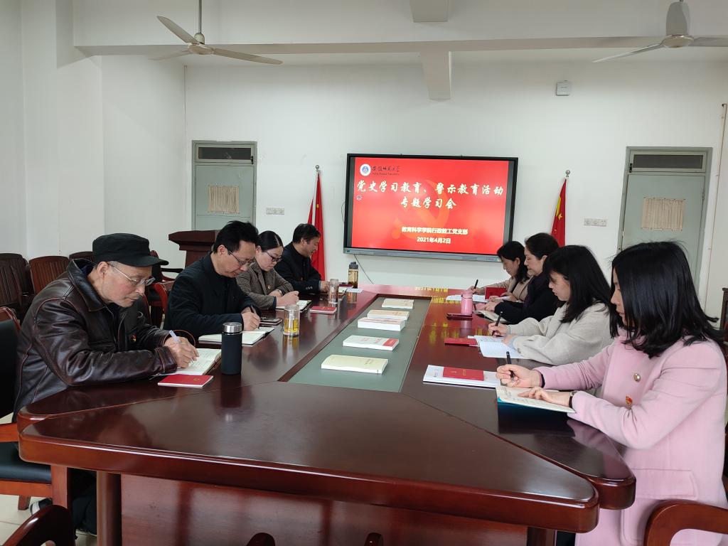 本网讯(365英国上市官网 黄引娣/文 莫大贡 程啸/图 )4月2日下午,行政教工党支部在学院308会议室开展党史学习教育及警示教育活动,活动由支部书记卞纲要主持,行政教工党支部全体党员参加了此次活动。