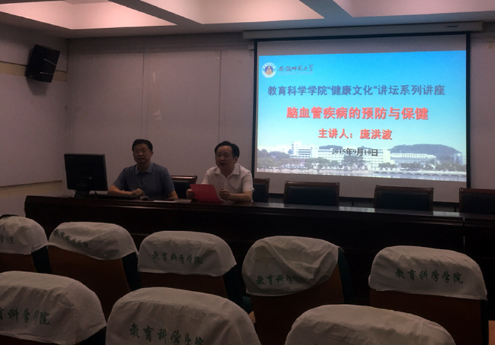 9月10日下午,学院工会组织开展 “健康文化”讲坛系列讲座、职工羽毛球交流赛、乒乓球友谊赛、教职工棋牌比赛等多种活动庆祝节日。丰富多彩的活动既让老师在繁忙的工作之余放松了身心,又丰富了教职工的文化生活,促进教职工间相互交流与协作,增强了学院的凝聚力。“健康文化”讲坛系列讲座是学院工会精心打造的特色活动,迄今已举办多场。本场讲座“脑血管疾病的预防与保健”,由芜湖市第二人民医院神经内科主任庞洪波教授为大家答疑解惑,庞主任从脑血管疾病发生的原因及如何预防、如何应对突发脑卒中等方面进行了详细的介绍,并与学院教职工开展面对面交流,希望教师们在繁忙的工作中正确调节自己,改掉不良生活习惯,加强体育锻炼,降低各种疾病的发生风险。